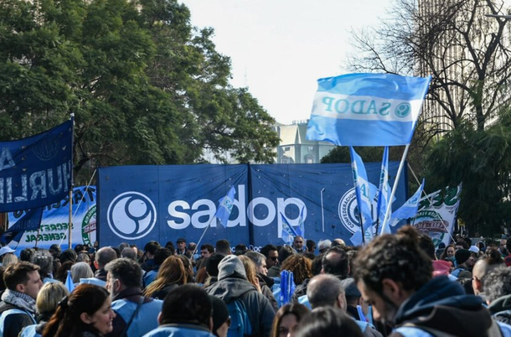 Esta tarde Sadop se movilizó a Plaza de Mayo junto a los gremios nucleados en la CGT, las dos CTA,...
