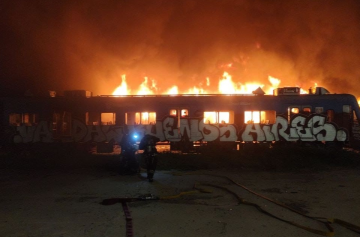 Impactante incendio de vagones abandonados en un predio de Colegiales